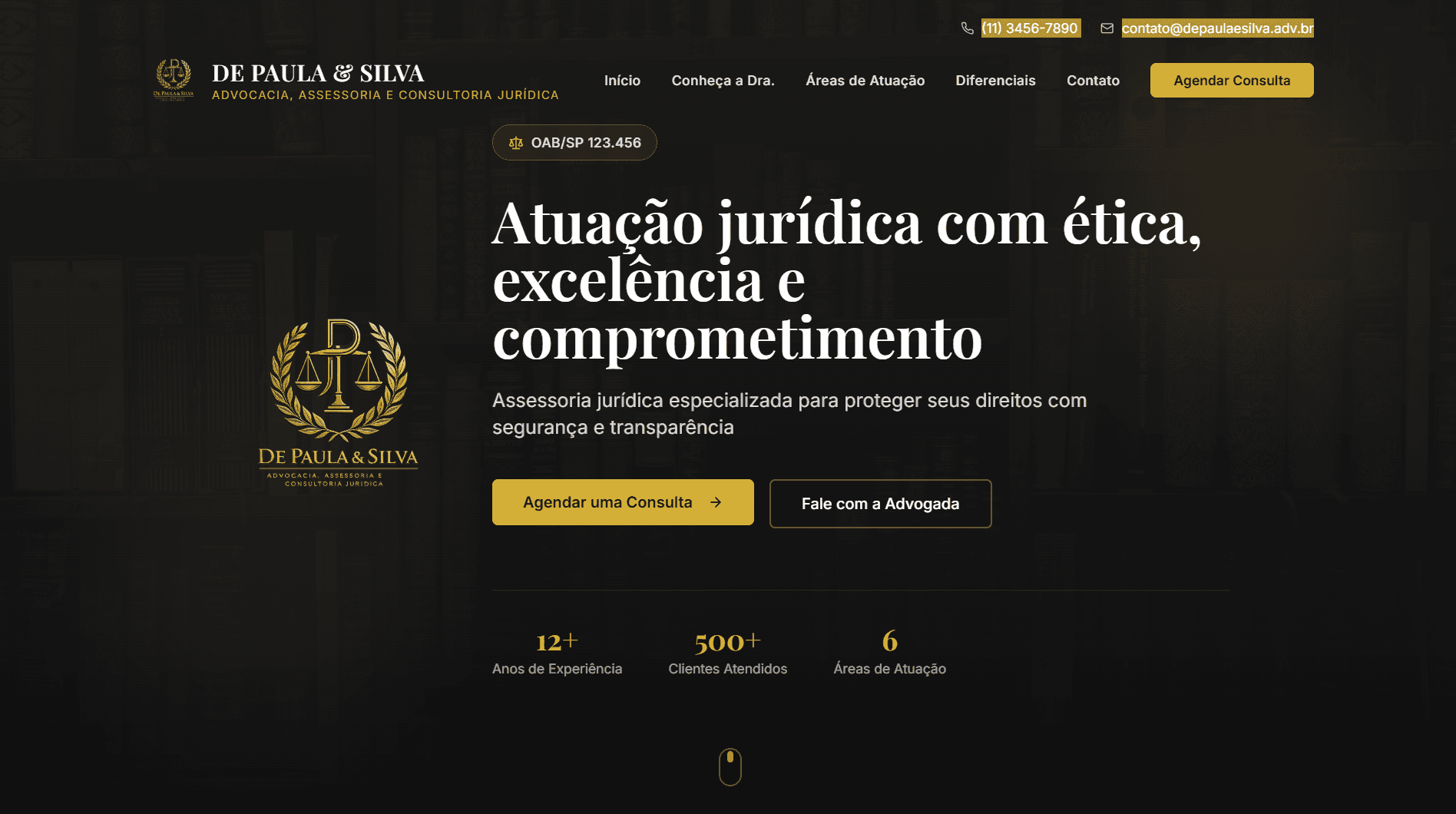 Site institucional para consultório. Sobre, áreas de atuação, depoimentos e formulário de contato.