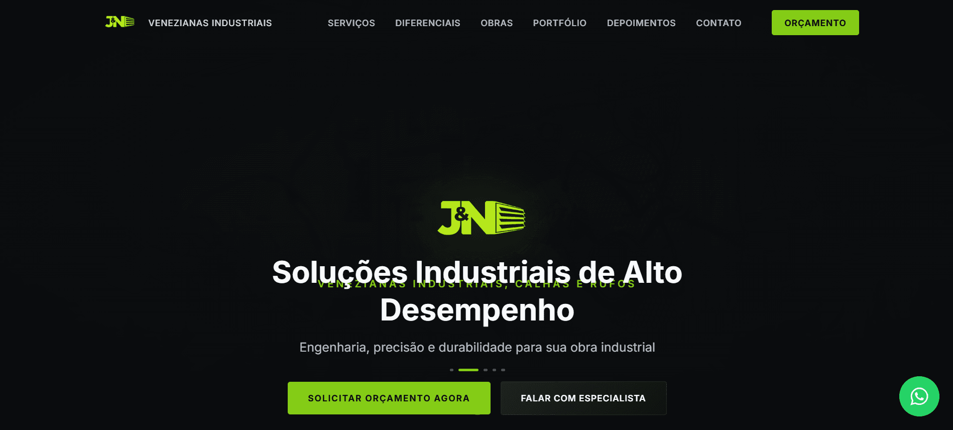 Site corporativo para venezianas industriais, calhas e rufos. Portfólio de obras, serviços e CTAs de orçamento.