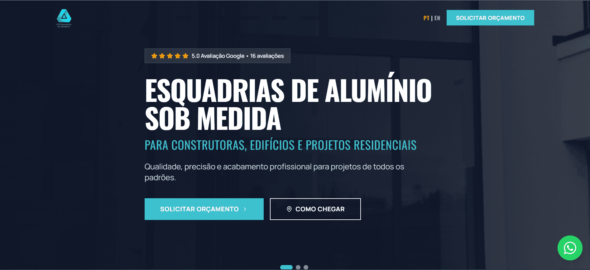 Site institucional para empresa de esquadrias. Apresentação de produtos, serviços e contato.